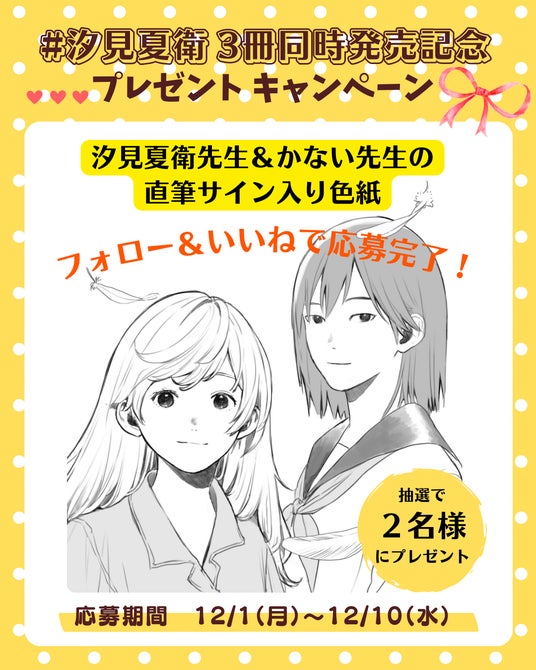 賞品:抽選で2名様に汐見夏衛先生&かない先生の直筆サイン入り色紙をプレゼント