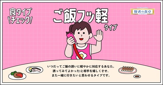 あなたの"食タイプ"を判定!誰かを食事に誘いたくなる!みんなで診断すればもっと楽しい『食タイプチェック』スタート!