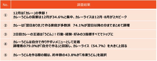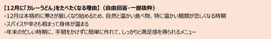 こうした調理のしやすさは、物価高騰下で広がる「作り置き」や、忙しい日常に求められる「簡便さ」といった生活者ニーズとと重なっており、結果としてカレーうどんの支持につながっている可能性を示しています。