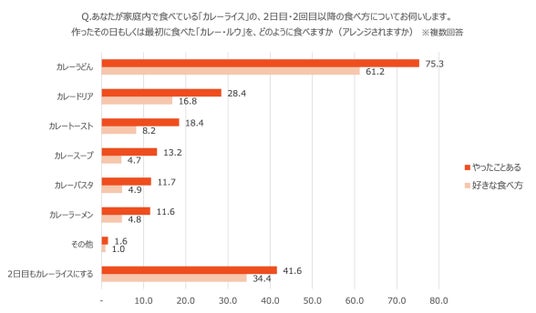 調査結果3. 2日目カレーの王道は「うどん」!行動・経験・好みの3指標すべてでトップに