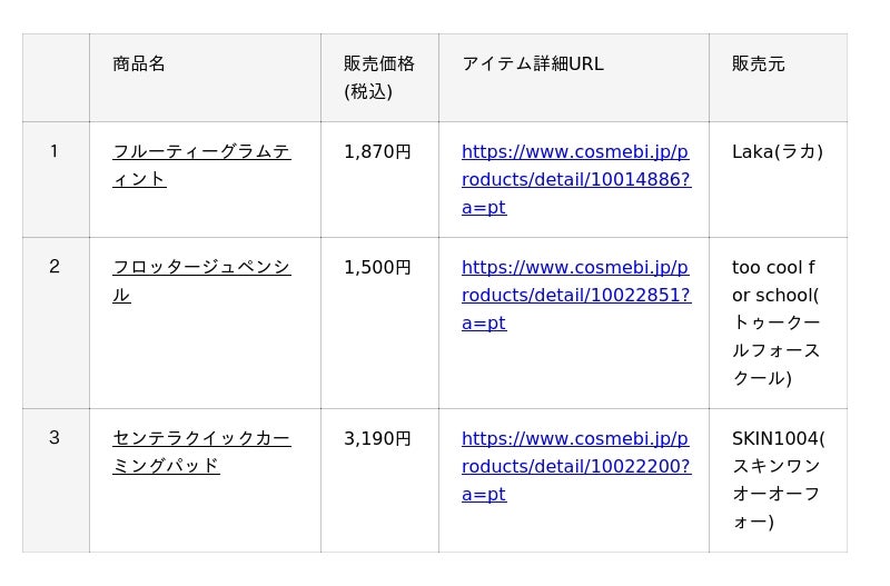 ・公式サイト :https://www.cosmebi.jp/?a=pt
