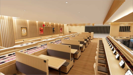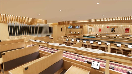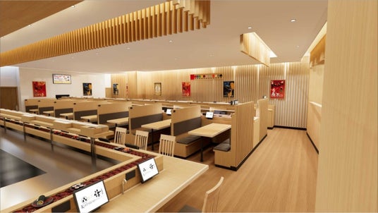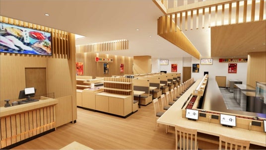 店内は、ほかの店舗と同様に和の雰囲気を基調とした明るく開放的なつくりで、幅広いお客様にお過ごしいただきやすい空間です。タッチパネルで注文しやすく、レーンで寿司が届く楽しさも変わらず体験いただけます。