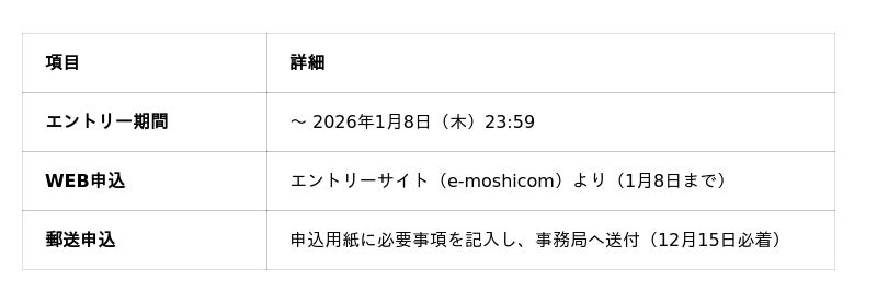 本大会は参加費が無料で、小学生から高校生以上までを対象とした10kmと5kmの各カテゴリーでランナーを募集します。エントリーは 2026年1月8日(木)まで。