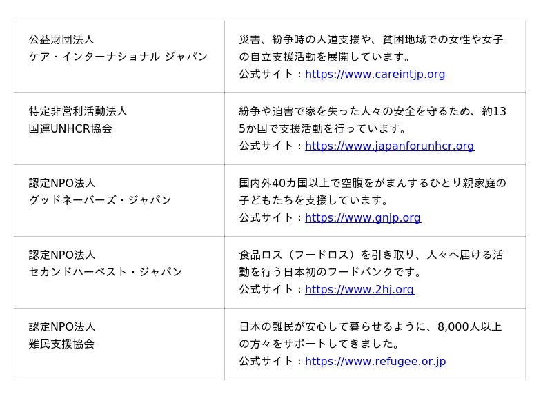 ■ 協力チャリティ団体(五十音順)