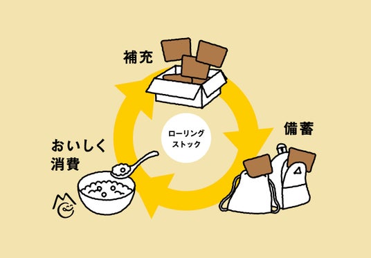 そんな中で出会ったのが「ローリングストック」という考え方。「ローリングストック」は、非常食を日常の食事として使いながら、自然に非常時への備えができる方法です。