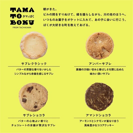 立川のまちをモチーフにした、立川でしか手に入らない限定デザインパッケージに、地元で愛される洋菓子店の上質な焼き菓子を詰め込みました。