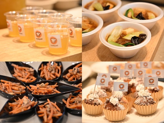 試食ブースの傍らには撮影ブースも用意され、メディア関係者が次々と料理を撮影する姿もみられました。試食会で提供された料理の多くは、クックパッドで実際にレシピが公開されています。