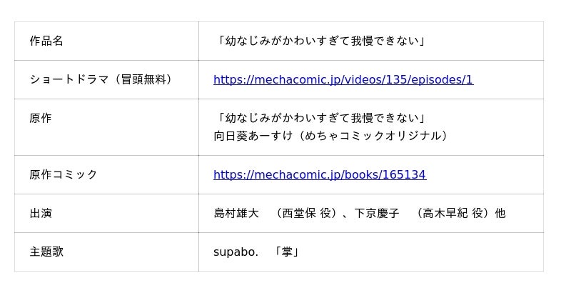 今後も「めちゃコミックオリジナル」の世界を広げる取り組みとして、実写ショートドラマを続々と配信してまいります。新たな展開にぜひご期待ください。