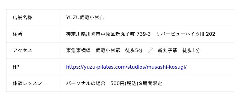 ▶︎https://yuzu-pilates.com/studios/musashi-kosugi/