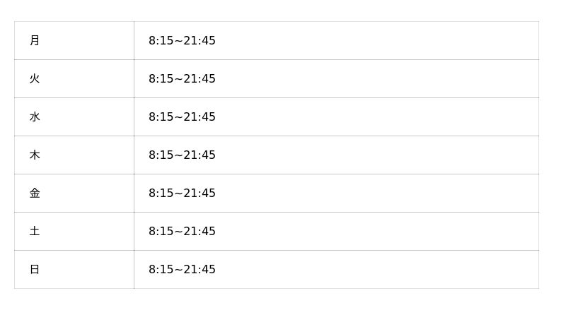 ※オープン時の営業時間となり、変更となっている可能性がございます。