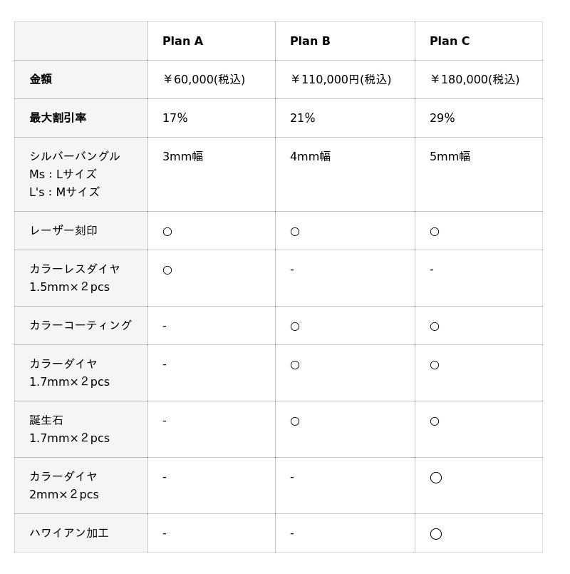 特典対象:Plan C(バングル・ネックレス)をご成約いただいた先着30組様