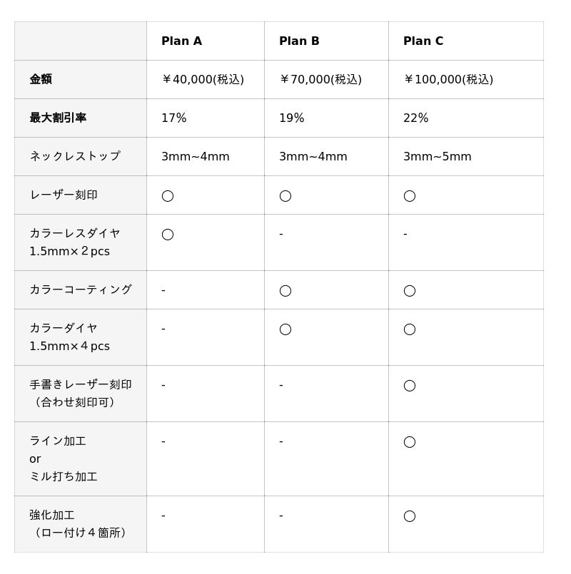 Plan Cをお選びいただいた先着30組様限定で、通常のカラーダイヤを「天然ピンクダイヤモンド1.3mm×2pcs」へアップグレードできる特別特典をご用意いたしました。