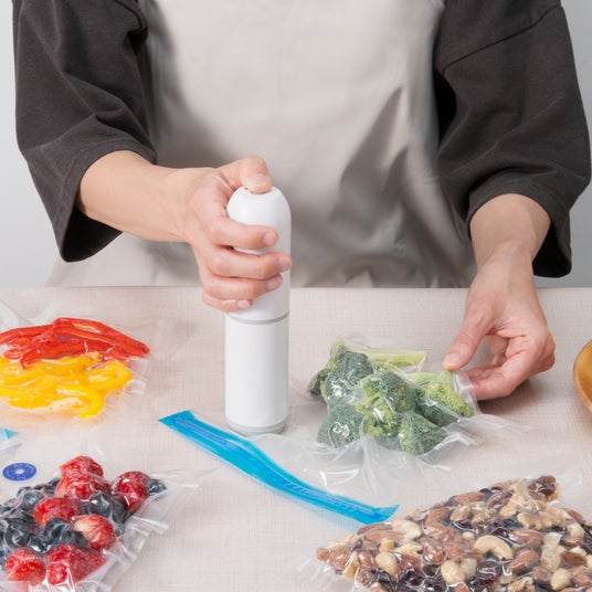 使用方法は簡単で、ボタンをワンプッシュするだけで吸引が始まります。空気が抜け真空になると自動で吸引が止まり、真空パックが完成します。当本真空パック器には、抗菌加工の真空用袋が同梱されており、シンプル操作とすぐに使えるセット内容で初めてでも使いやすい真空パック器です。