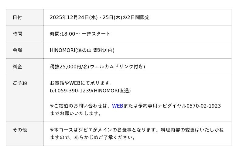 ■手島シェフ×いなべ 3代目猟師 高木雅矢 HINOMORIクリスマスディナー概要