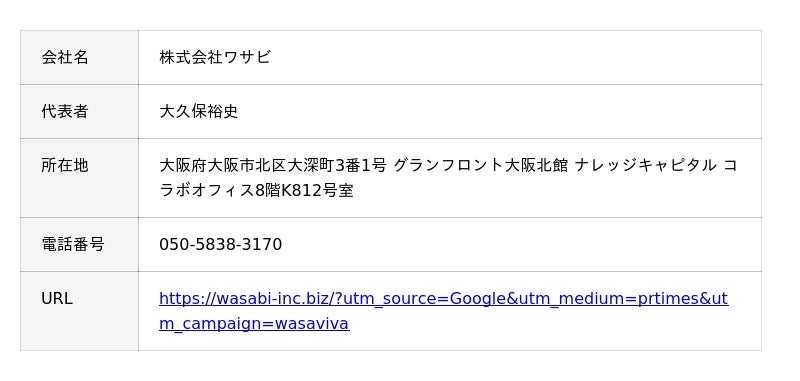 担当者:株式会社ワサビ 広報担当