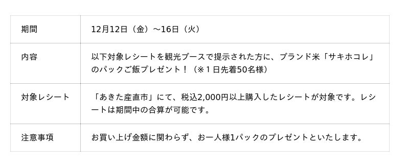 「あきた産直市」にて税込2,000円以上お買い上げいただいたお客さまに、