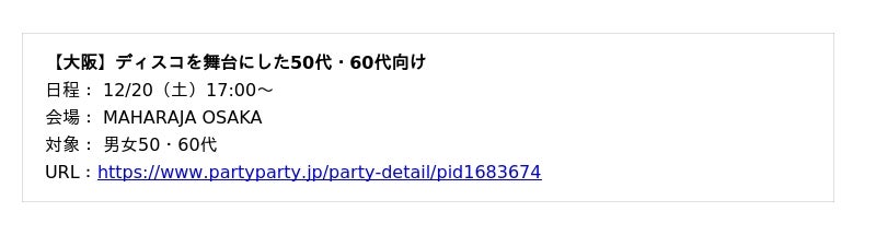 東京以外でも、地域・年代に合わせた100名規模のクリスマスイベントを企画しています。