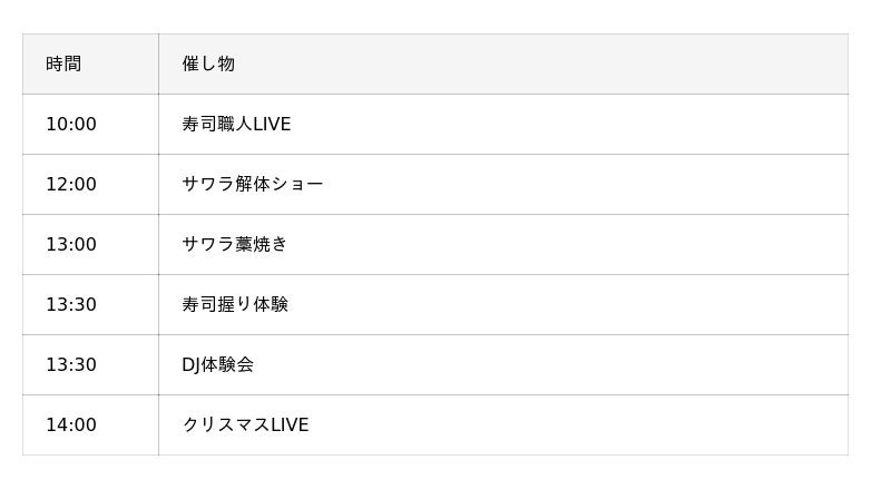 クリスマスらしい雰囲気の中で、握り寿司の実演や手作りリースなど「音楽×グルメ」が楽しめます。