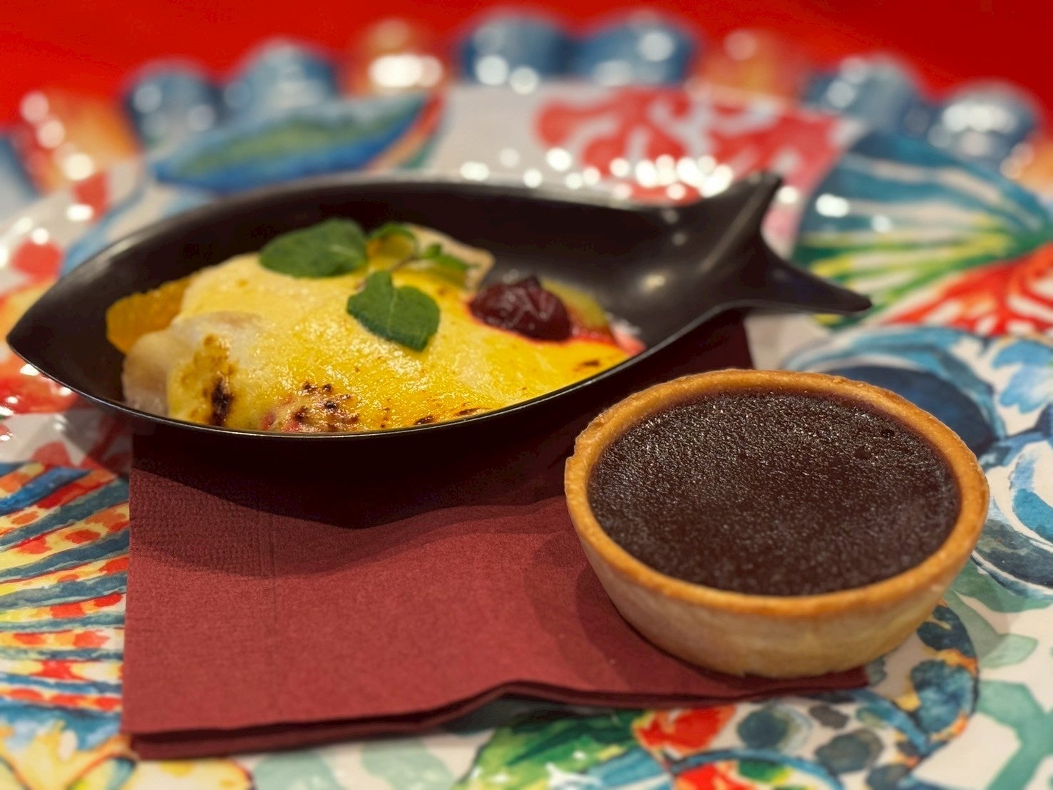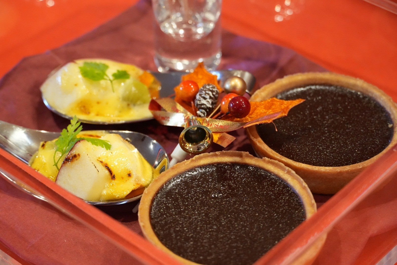 プレミアムクリスマスプレートには船内で焼き上げる「ローストトマトパイ」や、ミシュラン1つ星獲得、杦-SEN-監修の自家製タレに漬け込んだジューシーな「ローストビーフサンド」、京都料亭の拘りの「ポテトサラダ」、「ピクルス」の他、デザートにはサクサク食感がたまらない「タルトショコラ」、彩り鮮やかなフルーツに特製クリームをかけて焼き上げた「フルーツグラタン」を合わせ、クリスマス感じるプレミアムな時間を演出します。