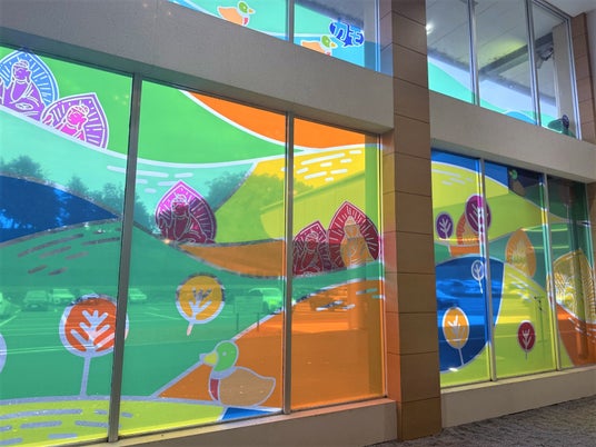 ロビーに配されたステンドグラス