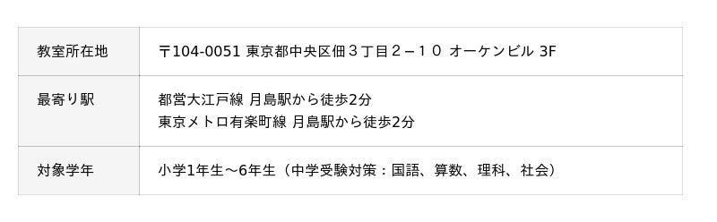 中学受験を本気で応援する、プロ講師による個別指導が、月島エリアでも受けられるようになります。