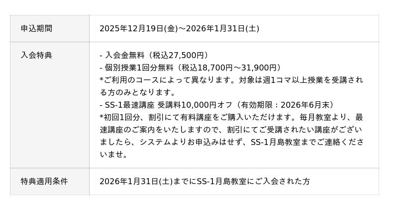 新規ご入会キャンペーン内容
