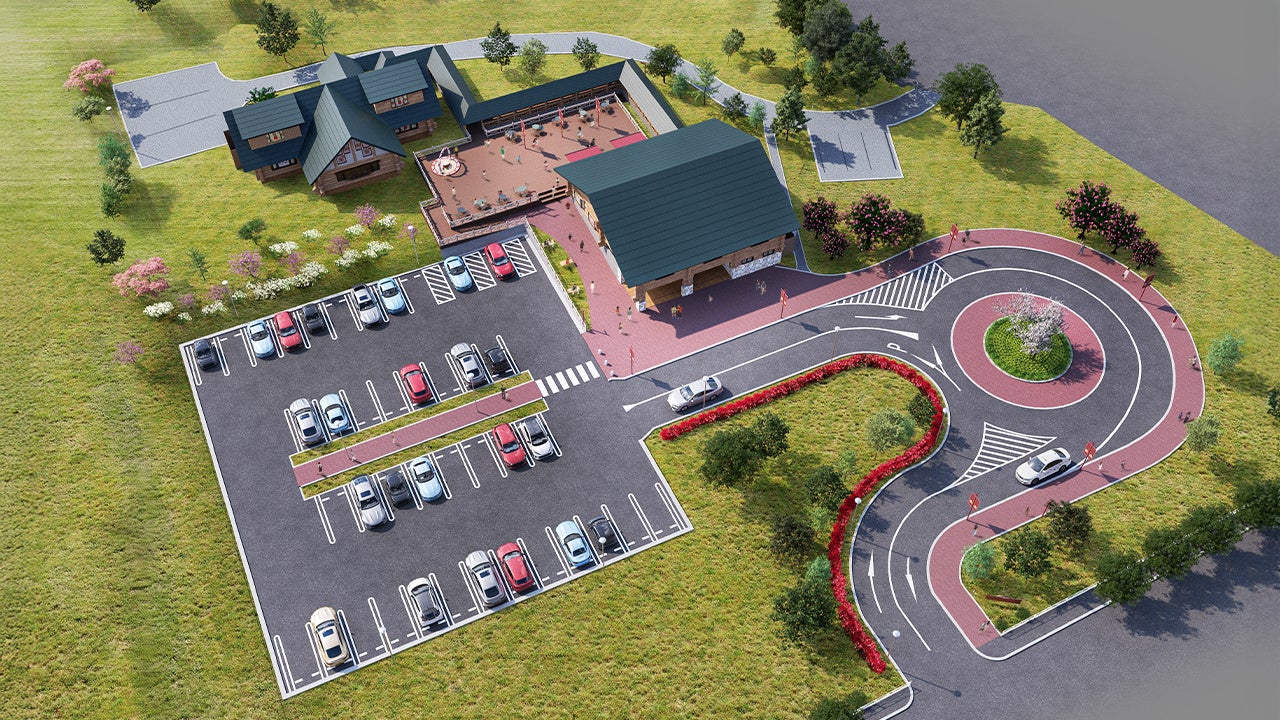 イメージパース(鳥瞰図、展示棟内イメージ、ギフトショップイメージ、外観)