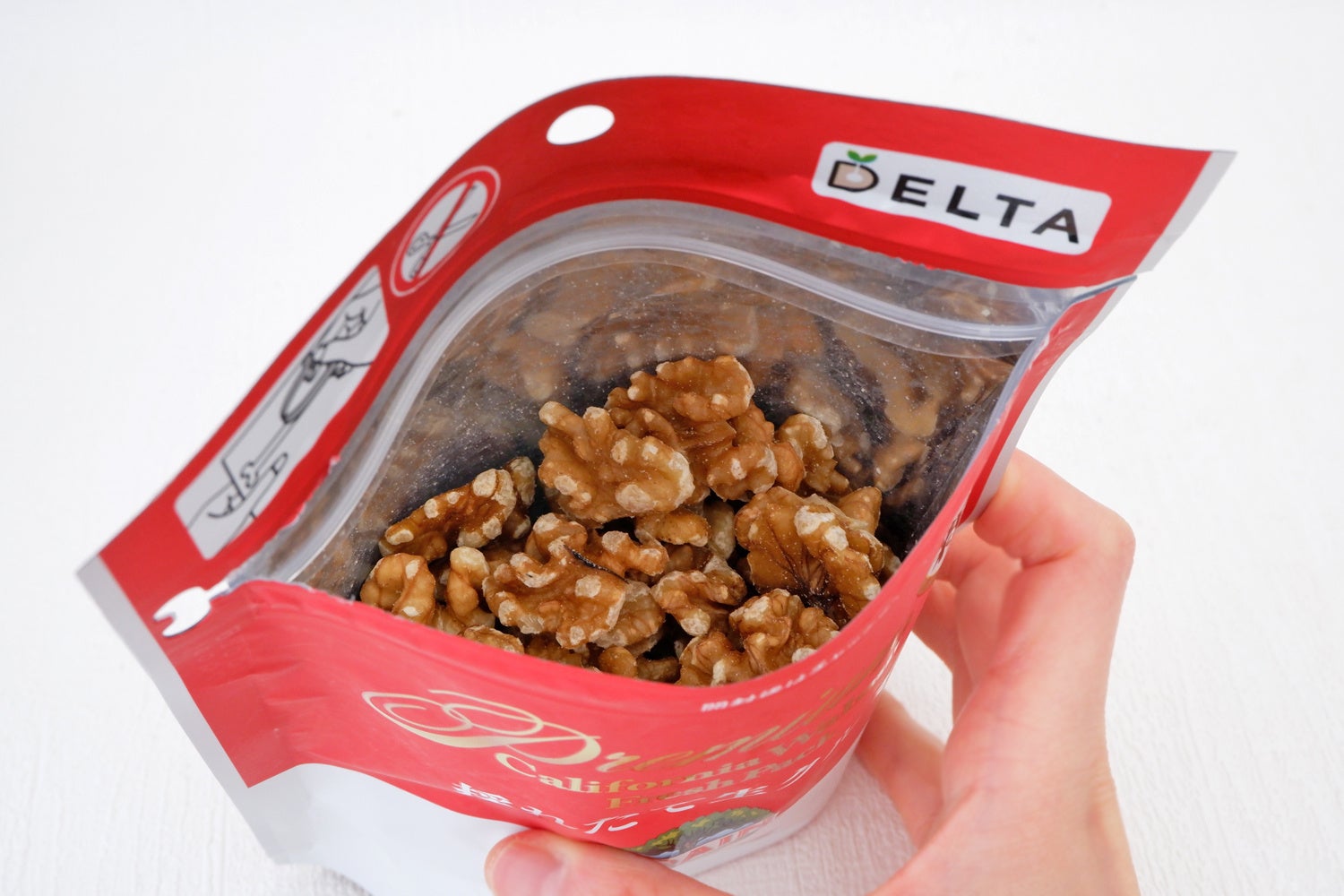 カリフォルニアの契約農園で収穫された新物クルミを、殻割り後すぐにパックすることで、採れたての香りと風味をそのまま閉じ込めました。