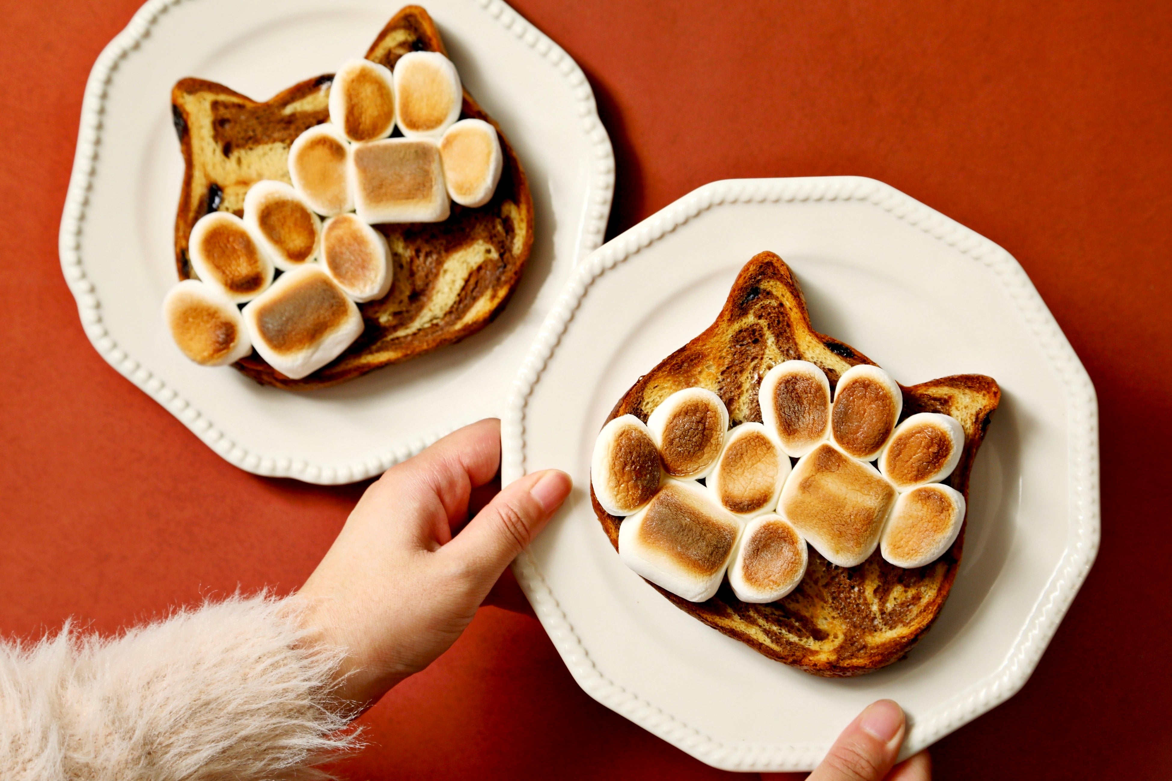 *「ねこねこ食パン ショコラキャラメル」のアレンジ写真でトッピングしている食材は付属しておりません。