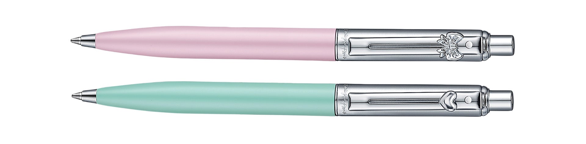 商品名 :エミリー・イン・パリス センチネル ボールペン ピンクマット(リボン型エンブレム付)/グリーンマット(ハート型エンブレム付)