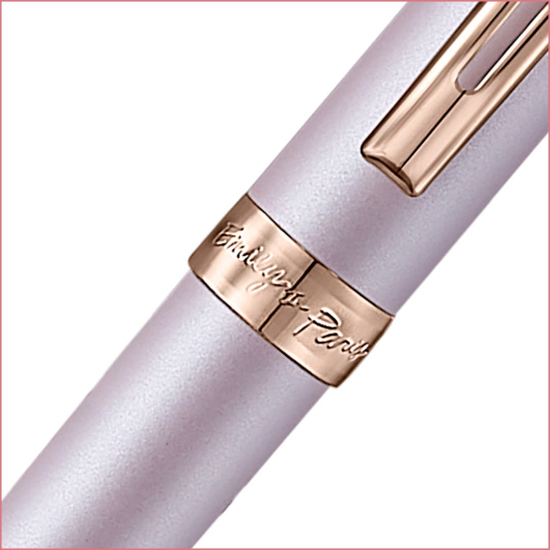 コンパクトで持ち運びに便利なこのミニサイズのボールペンは、パリの雰囲気と日常の機能性を完璧に融合しています。柔らかなパステルピンクのラッカー仕上げに、エレガントなローズゴールドPVDトリムを施し、『エミリー、パリへ行く』の洗練された遊び心を表現しています。天冠にはスワロフスキー・クリスタルがあしらわれ、上品な輝きを添えています。携帯に最適なサイズ感で、クラッチバッグやトラベルウォレットにすっきり収まり、手帳用としても最適です。中央のリングにはドラマタイトルとシェーファーのロゴがダブルネームで刻印されており、機能性だけでなくコレクション性も抜群です。
