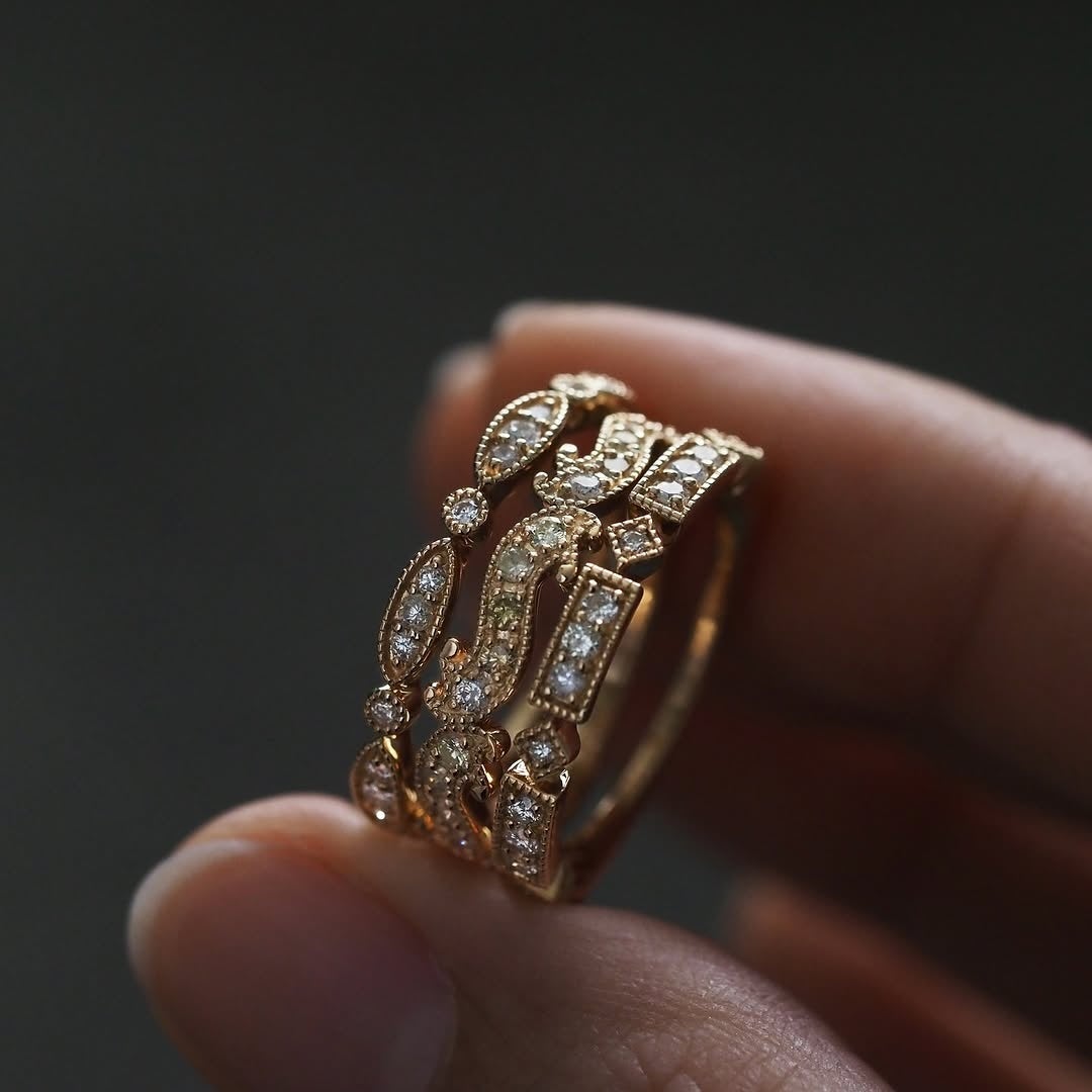 2.5mm~3.8mmサイズのダイヤモンドを贅沢にあしらった3種類の新作リングです。