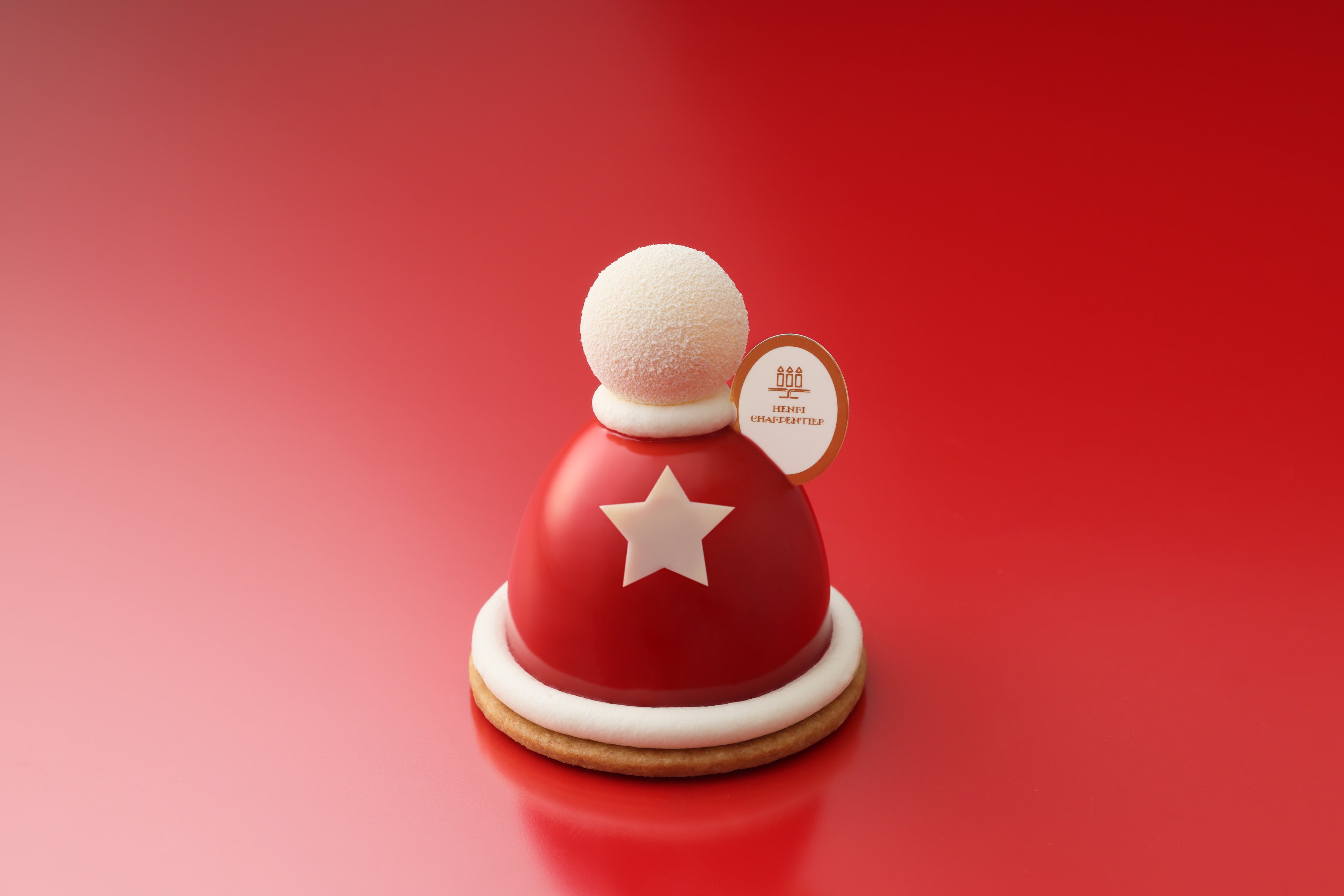 2025年ニューオープンの話題のショップのクリスマスケーキ。サンタさんの帽子型が愛らしいチョコレートムース。