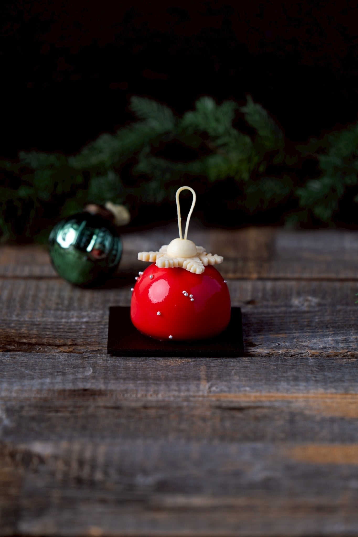 クリスマスの主役にふさわしい、鮮やかな深紅のケーキ。フランボワーズ香るジェノワーズショコラに、シャンティーショコラとフランボワーズクリームをサンドしました。濃厚なショコラと甘酸っぱいフランボワーズの、甘美な味わいをお愉しみいただけます。
