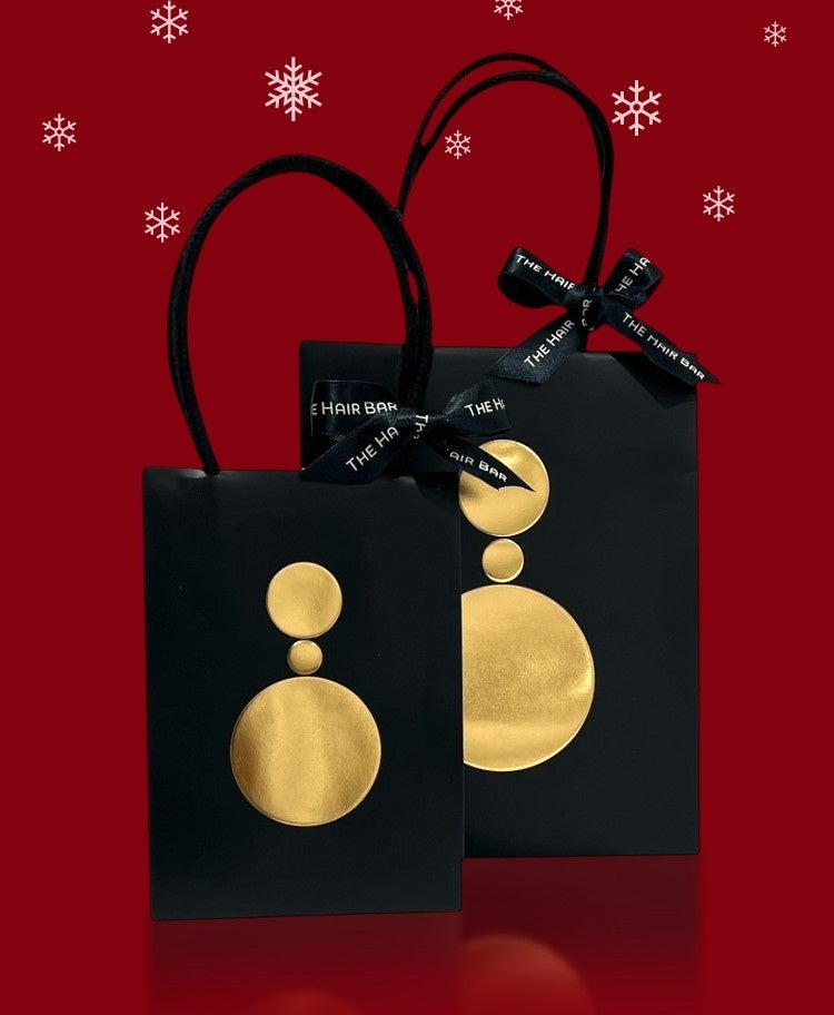 全国の店舗およびオンラインストアにて、ホリデー限定デザインのショッパーでお包みをいたします。オンラインストアでは、ご希望の方に限りショッパーを同梱いたします。マットな黒をベースに上品なゴールドエンボスのロゴがマチュアなギフトを演出します。