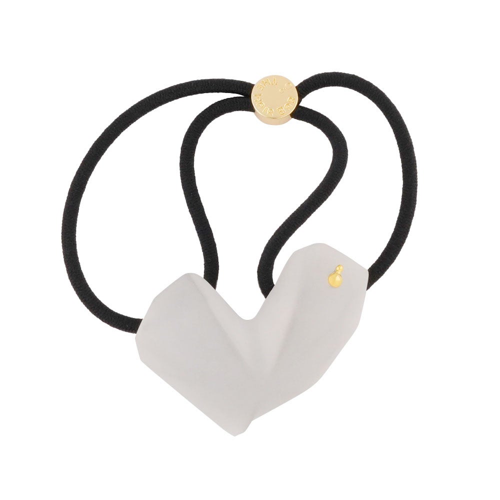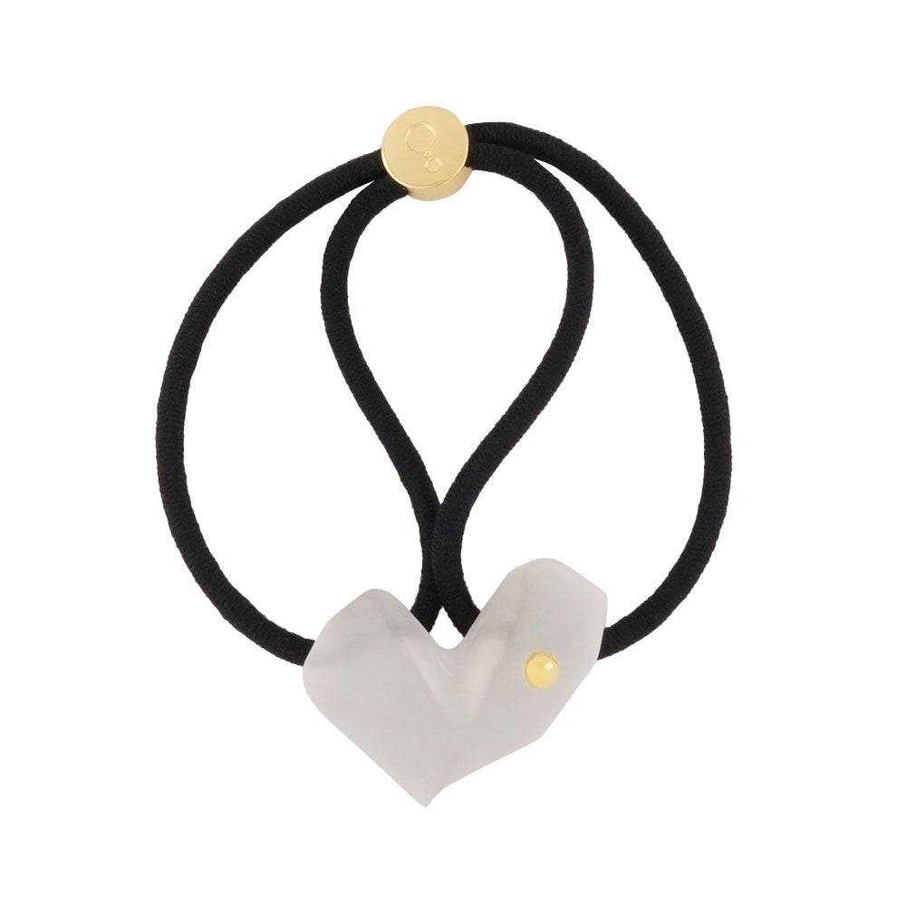 を象徴するフロスティング ハート ジェムポニー待望のフロスティング(マット)タイプが登場しました。これまでの光沢仕上げとは一線を画す、すりガラスのように柔らかく溶け込むニュアンスが魅力です。輝きを抑えたパウダリーなテクスチャーが、大胆なファセットをもつハートモチーフをいっそう際立たせ、スタイルに新鮮で洗練された存在感を添えます。シンプルなポニーテールはもちろん、同シリーズのヘアピンやMサイズポニーとのレイヤードによるアレンジもおすすめ。日常の装いを上品に印象付けてくれるアイテムです。テクニックを必要としないので、ギフトとしても喜ばれるアイテムです。