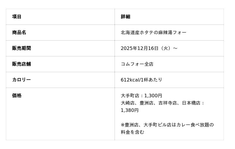 『麻辣湯(マーラータン)×フォー』冬の期間限定 北海道産ホタテのうま辛スープを発売!【COMPHO】