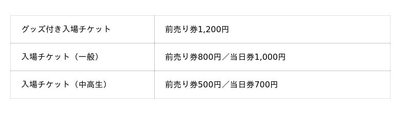 ※グッズ付き入場チケットは前売り販売のみ