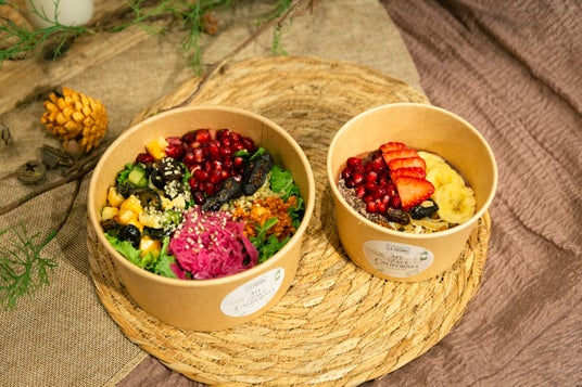 左からカリフォルニア産の食材を使用したサラダボウル、アサイーボウル。抗酸化・エイジングケアサポートのサラダボウルには、3種のカリフォルニアチーズ、ざくろ、いちじく、ピスタチオ、オリーブマリネ、プルーン、アーモンドをふんだんに。美容・腸内環境サポートのアサイーボウルは、ざくろ、いちじく、アップサイクルローストグラノーラを使用