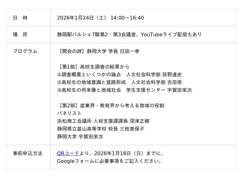 2026年1月24日開催!静岡県内3,000人の高校生調査が示す地域の役割について考えます
