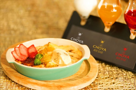 梅酒カクテル専門店「The CHOYA(ザ チョーヤ)銀座BAR」贅沢フルーツとたっぷりカスタードのブリュレに南高梅シロップ3種「CHOYA とろける梅フルーツグラタン」を新発売!