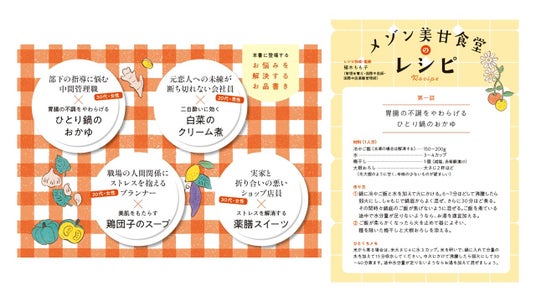 刊行に際し、人気レシピサイト「楽天レシピ」とのコラボ企画が実現! 胃の不調、二日酔い、美肌、ストレス……登場人物たちのさまざまなお悩みを解消するメニューとして作中で紹介された5つの料理を、「メゾン美甘食堂」公式ファンページと特集記事にて公開します。
