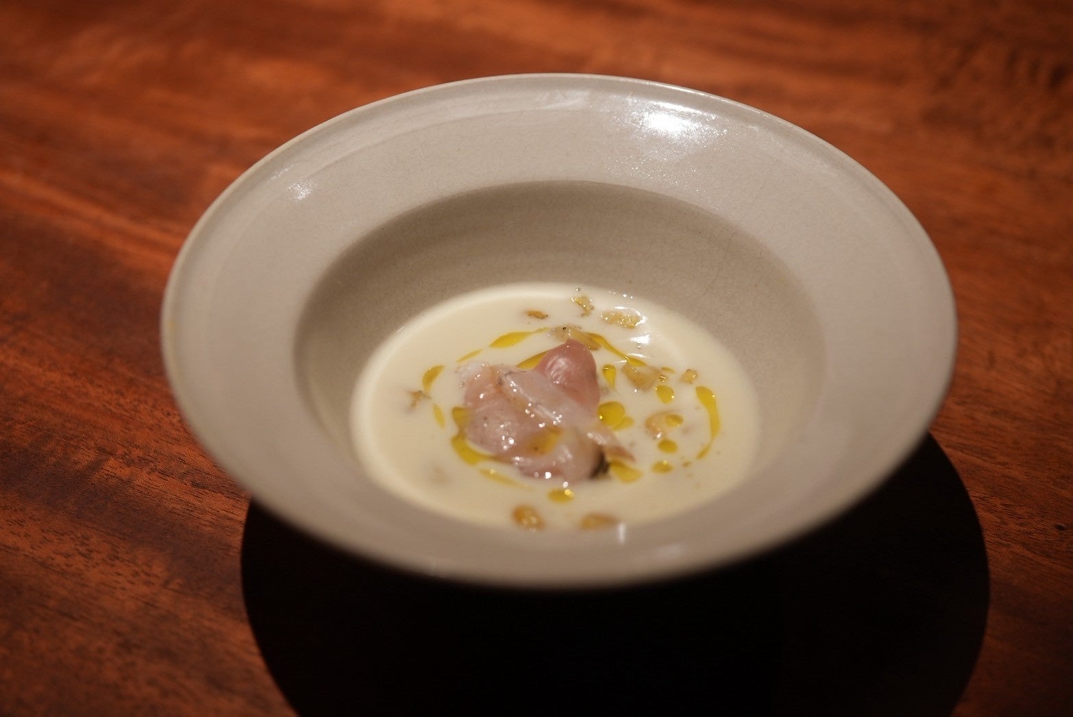 鈴川氏「コラボレーション、めちゃくちゃ楽しかったです。日々料理を微調整しながら、メニューを完成させていくプロセスが、特に楽しめました。出汁を軸にした構成や、和包丁中心の調理スタイルなど、日本へのインスピレーションを強く感じました。ヘソス氏とは、シェフ同士としての共通した文化的感覚が、料理をひとつにまとめあげることができたのでは、と感じています。」