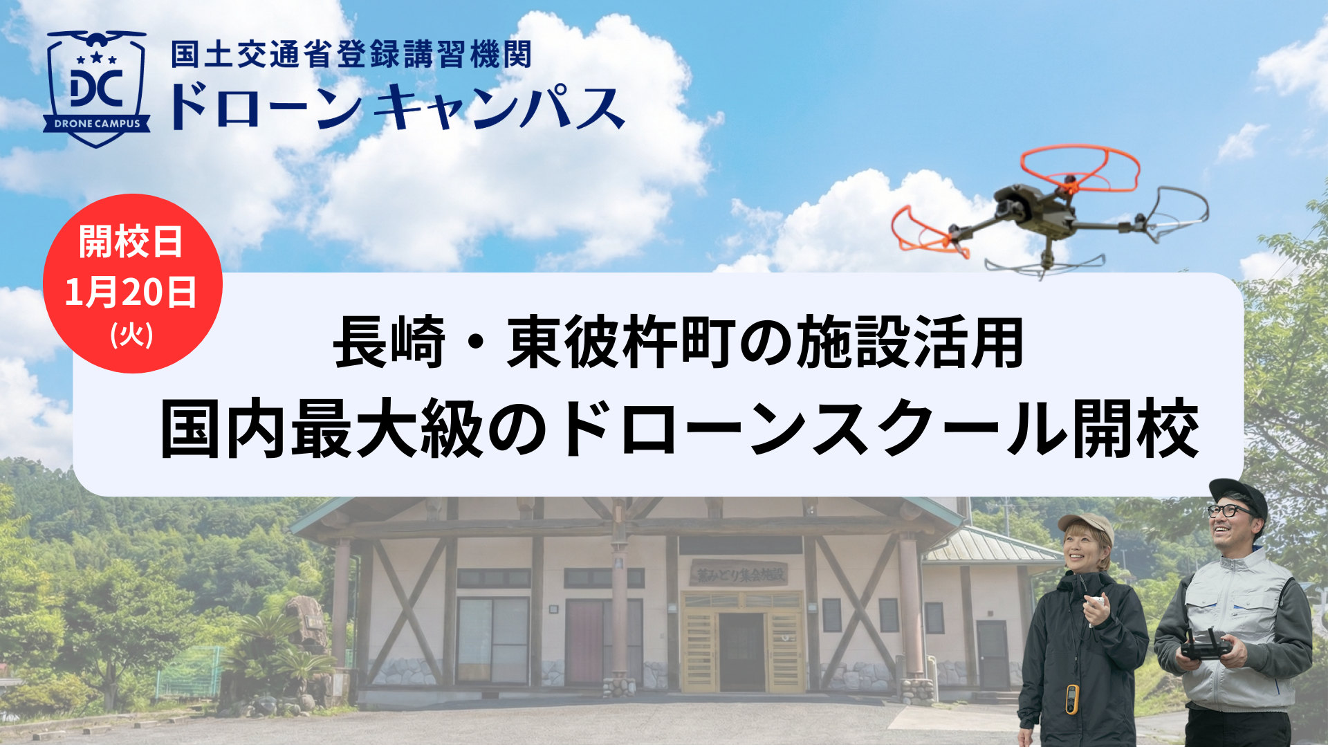 廃校や遊休施設を活用した「地域密着型」のドローン国家資格スクールを全国展開するむげんのそら株式会社(本社:福井県鯖江市、代表取締役社長:久森章裕)は、2026年1月20日(火)、長崎県東彼杵郡東彼杵町に国交省登録講習機関「ドローンキャンパス 長崎の空」を新規開校いたします。本校は長崎県内では初の開校で全国12拠点目となります。