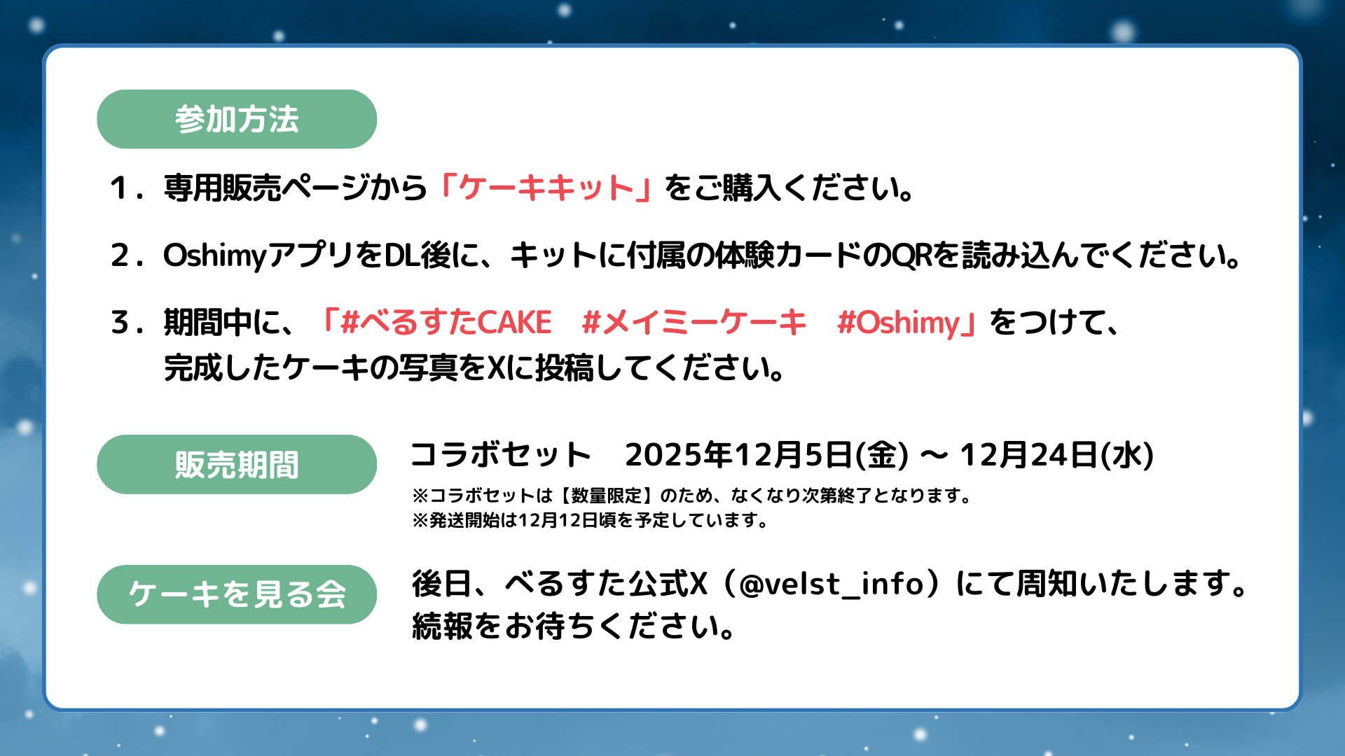 【べるすた × MADE BY ME PROJECT コラボセット】Oshimyアプリ連動!べるすたのメンバーと一緒にクリスマスケーキ作りが楽しめる特別コラボセットが登場