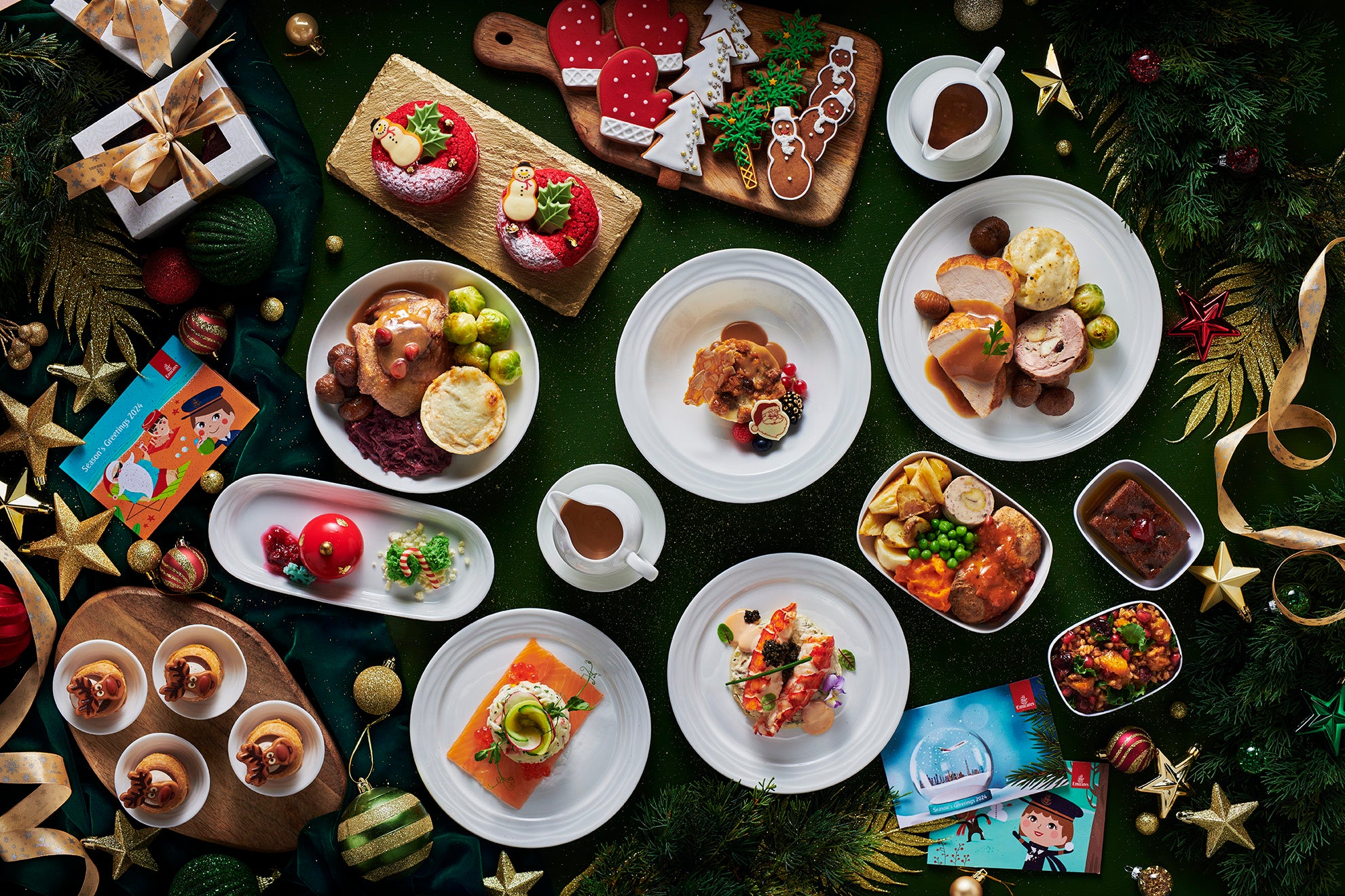 A380の機内ラウンジでは、ミンスパイ、シュトーレン、パネットーネ、マカロン、ジンジャープロフィットロール、チョコレートガナッシュ、クランベリーフィナンシェ、ビスコッティ、キャンディケーンなど、ホリデースイーツを幅広く取りそろえています。軽食には、ターキー、ローストビーフ、チェダー、クランベリーソース、チリトマトレリッシュを重ねた食べ応えのあるクリスマスサンドイッチも提供します。さらに、季節限定の撮影用アイテムもご用意しており、クリスマス気分を盛り上げる記念撮影もお楽しみいただけます。