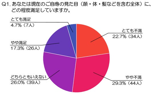 - そして最も少なかったのが「とても満足」で4.7%(7人)で、自分の見た目を強く肯定できる人は極めて限られた割合にとどまりました。