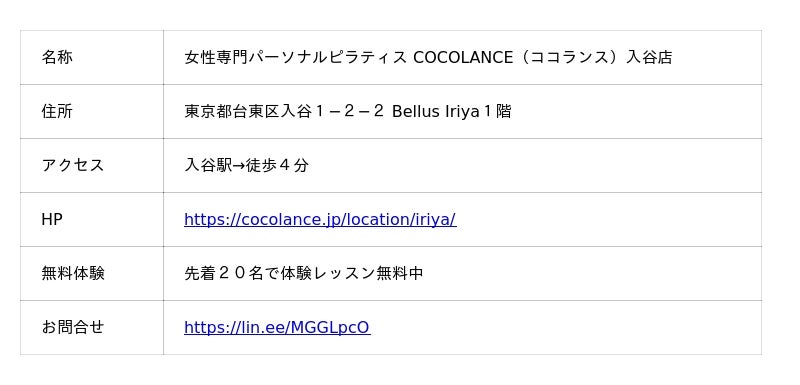 【入谷駅 徒歩4分】女性専門パーソナルピラティス COCOLANCE(ココランス)入谷店が2026年1月14日にオープン