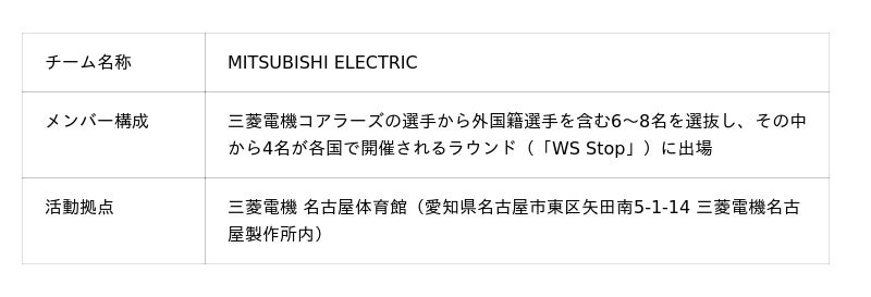 当社は、5人制女子バスケットボールチーム「三菱電機コアラーズ」から選手を選抜し、本大会のオフィシャルパートナーとなるコマーシャルチーム「MITSUBISHI ELECTRIC」を組成して参画します。