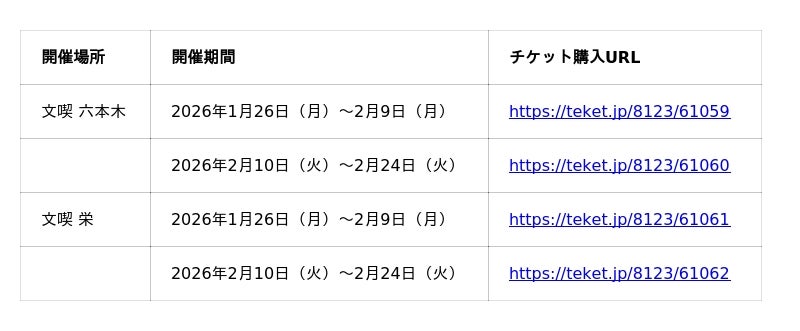 チケット販売期間:2025年12月24日(水)正午~各指定日時まで